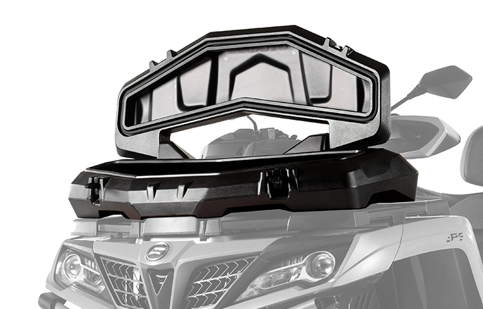 Сложная геометрия кофра является не только элементом дизайна, но и при аналогичном весе увеличивает прочность кофра за счет наличия ребер жесткости.