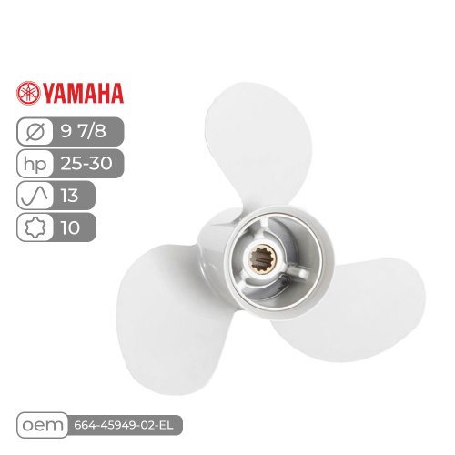 Алюминиевый трехлопастной гребной винт с резиновой втулкой амортизатором для подвесных лодочных моторов Yamaha мощностью 25-30 л.с.